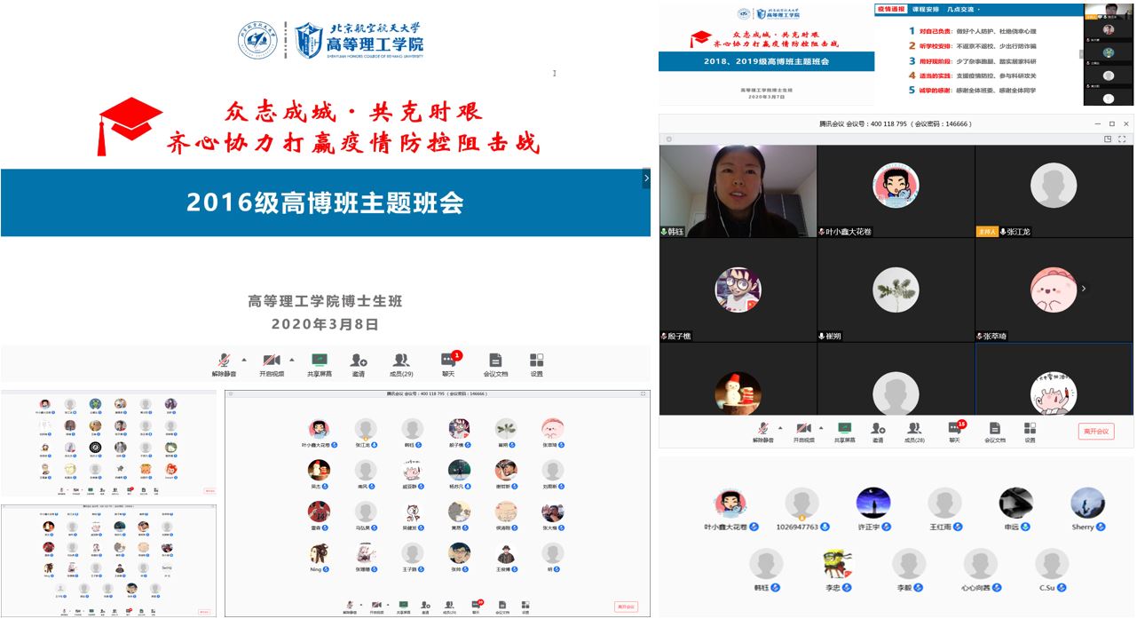 在严格落实学校前期疫情防控各项工作部署的基础上,为进一步做好学生疫情防控工作、落实学校及学院各项工作要求、优化提升在线教育教学效果,高等理工学院博士生班(以下简称“高博班”)近期以视频方式召开了主题为“众志成城·共克时艰——齐心协力打赢疫情防控阻击战”的云班会,覆盖博士生所有年级学生。高等理工学院韩钰副院长及高博班辅导员和全体同学参加。