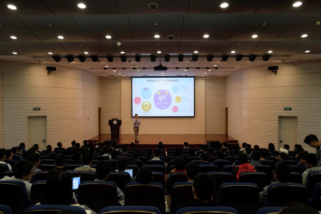 2019年10月18日下午,帝国理工学院国际招生管Jake Ganymede先生访问高等理工学院,并做了题为Study, Research and Life in Imperial College London主题报告,他围绕帝国理工学院的学习、研究和生活等方面展开了详细介绍,并为有意向出国深造的同学们提供了指导与建议。来自全校不同学院的本、硕、博在校学生共计200余人报名参加了本次讲座。该讲座是“助力扬帆•伴你同航”系列课程第二讲,由“与你同航”研究生国际交流工作室和高等理工学院博士生班联合承办。