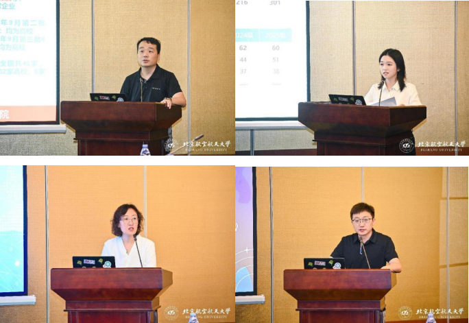 在汇报环节,北航国家卓越工程师学院工程师技术中心副主任姬瑞鹏,详细汇报了学院的工作情况,展示了北航在探索“校企联合、需求牵引、全程协同”卓越工程师培养新范式上的努力与成果。航天科技集团人力资源部培训教育处主管刘淑萍、航天科工集团科技保障中心有限公司人才事业部人才培养业务室主任于杨、中国星网集团教育培训中心(星网党校)高级业务经理张实分别代表各自集团,介绍了在卓越工程师培养方面的实践经验和特色做法,内容既有顶层设计的高度,又有实践落地的深度,为在场嘉宾提供了宝贵的借鉴。